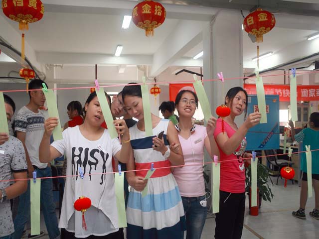 2014年中秋,惊喜连连,猜灯谜活动,再次魅力来袭。爱家宝贝们动脑又动手,猜对灯谜即可获得惊喜连连戳气球拿大奖机会一次,伴随着气球爆炸声,金花四溅,属于自己的惊喜奖品也揭晓啦,高级打火机、实用沐浴露、纸巾等、时尚太阳伞、漂亮的陶瓷杯……不管拿到什么奖品,这份惊喜和快乐,都让宝贝们笑得合不拢嘴。除了开心快乐的中秋活动,公司为全体宝贝们送上了月饼和红包,让每一个诺舟宝贝都感受到了爱家的温馨。
