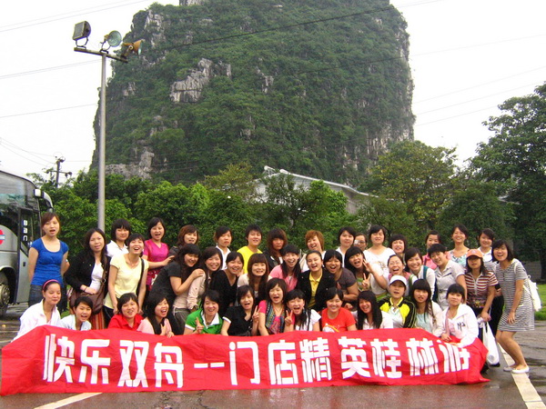 带着期望,5月16日经过八个小时的车程,我们在凌晨两点到达了目的地-----阳朔。5月17-18两日的桂林之旅,让我们充分领略了“桂林山水甲天下,阳朔山水甲桂林”的名不虚传,温柔秀美的漓江,宛如风情万种的江南女子,五月的阳朔时晴时雨,大家非常幸运的领略到烟雨漓江的朦胧秀美。骑着单车,徜徉在花香醉人的田间小道,牧童的斥牛声都像是一首动听的音乐,蓝天白云,醉人的风,闲适的心情,让人留恋。入夜,大家到有名的西街品纯正的酒吧文化,时尚与这里清丽秀美的景色相得益彰,大家在这里尽情挑选带给家人和朋友的礼物,购物的天性在这里得到了充分的展示。同仁们还游览了著名的银子岩,洞内汇集了不同地质年代发育生长的钟乳石,晶莹剔透、洁白无瑕,宛如夜空的银河倾斜而下,闪烁出若银子、似钻石的光芒,让所有同仁都啧啧称奇。最为挑战的是创意奥斯卡和攀岩,激发了大家挑战自我、不断创新的热情。
