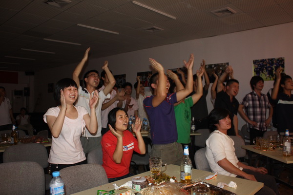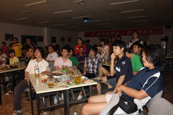 ,是一个令全世界足球爱好者为之疯狂的日子,双舟的球迷们也不例外,巨幅世界杯主题喷绘、整墙的足坛明星、海量供应的啤酒、不限量的零食、顶尖的播放及音响设备,今天就是球迷们疯狂的节日,今天,双舟的球迷们将度过一个不眠之夜。