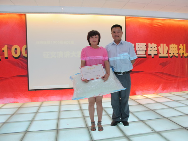 2010年8月30日下午,“双舟连锁1005班实习生征文演讲比赛暨毕业典礼”在总部培训室举行。参加本次比赛的有来自挑战队、曙光队、团结队的27名实习生。评委阵容则由总经理易军先生、副总经理罗金萍小姐以及门店营运中心项目经理饶争献先生组成。