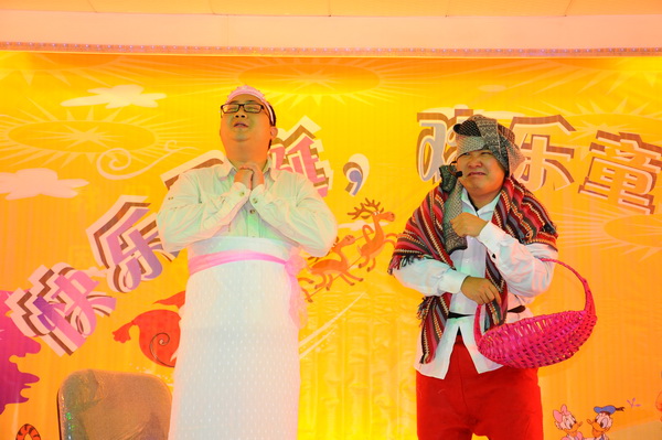 欢乐童话世界在圣诞老人滑稽而搞笑的“企鹅舞”表演中拉开了帷幕,美少女战士、小红帽、蜡笔小新、樱桃小丸子、白雪公主、唐僧取经、灌篮高手、半夜鸡叫、叮当家族、喜羊羊与灰太狼等精彩童话故事悉数登场。在童话王国里,不管是60、70,还是80、90,各班的孩子们都使出自己的浑身解数,展现了绝顶的表演天赋,“包子版白雪公主”、“刘敏版皇后”、“冠希版白骨精”等形象更是深入人心。