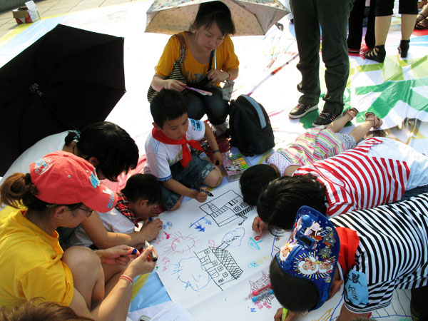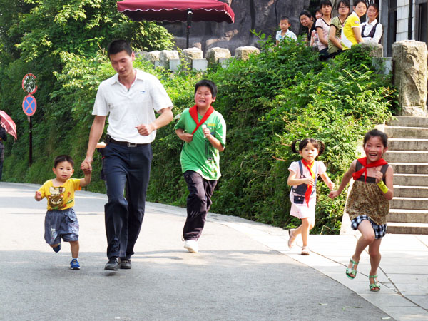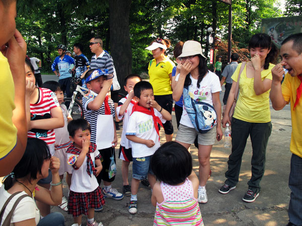 阳光灿烂的下午,二十余名3岁以上的孩子们共同参与了“活力宝贝爬爬山”的活动。快乐的小精灵们和爹地妈咪一起从东方红广场出发,一路上互帮互助,你追我赶,穿越了“欢乐唱唱”、“心有灵犀”、“快乐模仿秀”等重重关卡,并和双舟幼儿园的志愿者姐姐们胜利会师岳麓山顶。在山顶,孩子们充分发挥了自己的超强想象力,画下了一幅幅美丽图画。